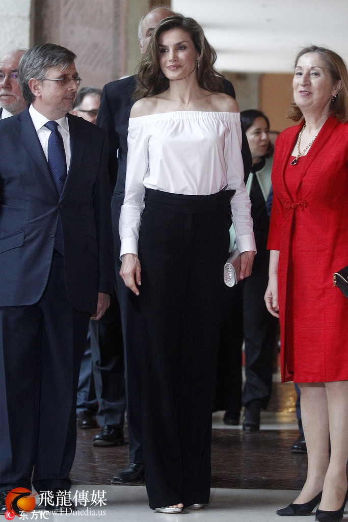 西班牙王妃也选择了一字肩上衣,政客也优雅。