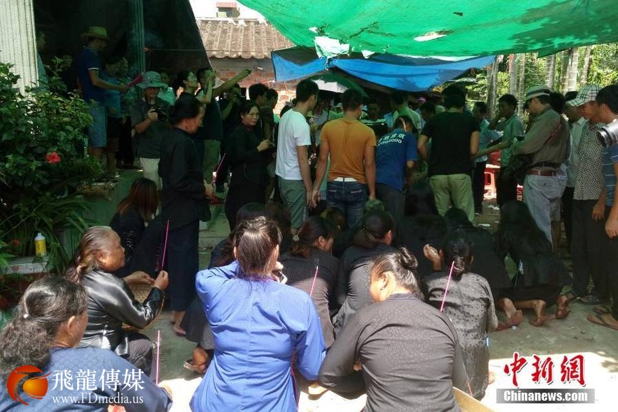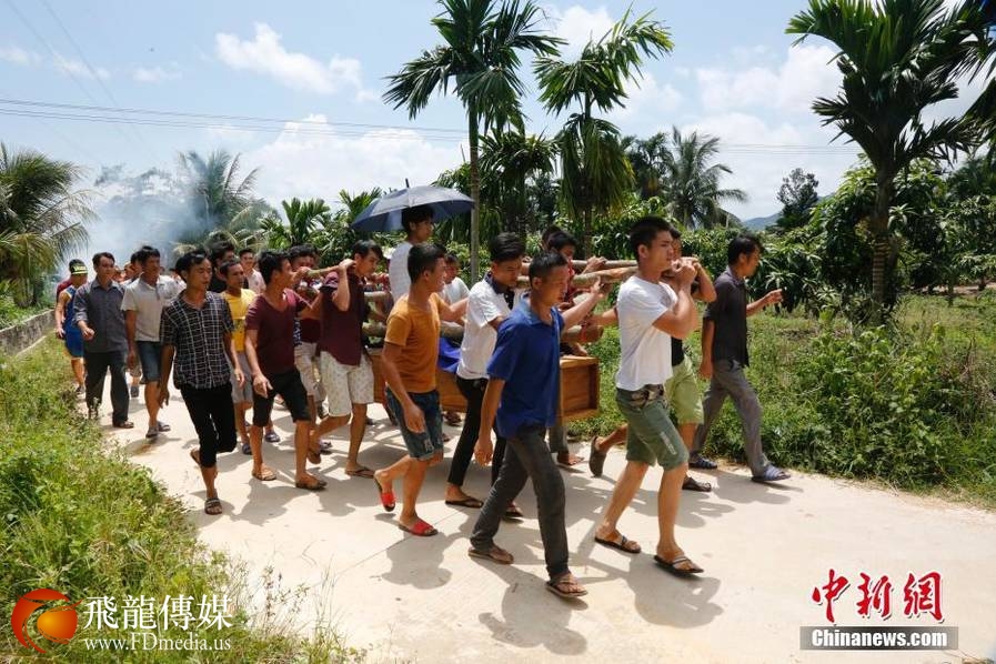葬礼按照当地黎族习俗举行,亲属和村里乡亲为黄有良老人送行。