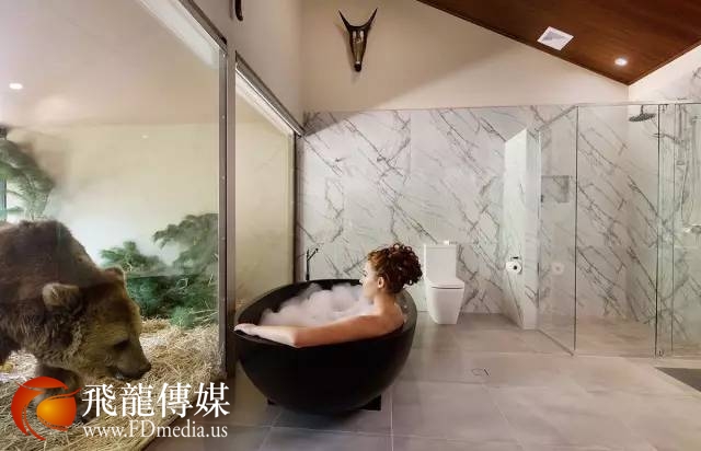 隔着玻璃,你可以与狮子一起吃饭、与熊一起泡澡、喂长颈鹿……一睁开眼,就能感受到动物们的问候。