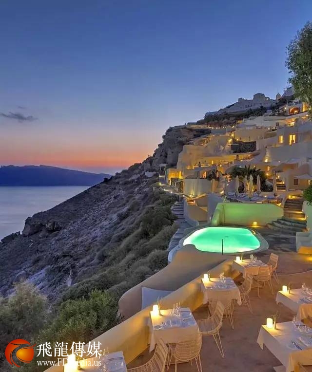 建于圣托里尼的最著名的悬崖之上,纯白色的建筑外观非常漂亮。每间套房都有朝向大海的阳台或露台,拥有世界上最美的无边泳池,以及能欣赏到火山口的迷人酒吧。