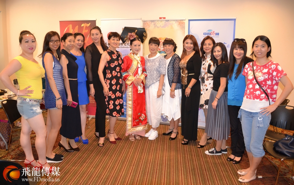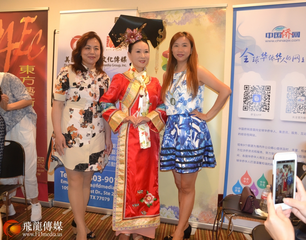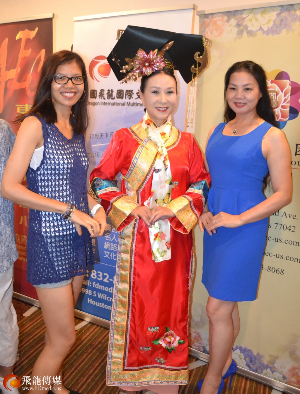 2017美国旗袍大赛休斯敦赛区佳丽与模特何冰合影。飞龙传媒记者 小珑摄影