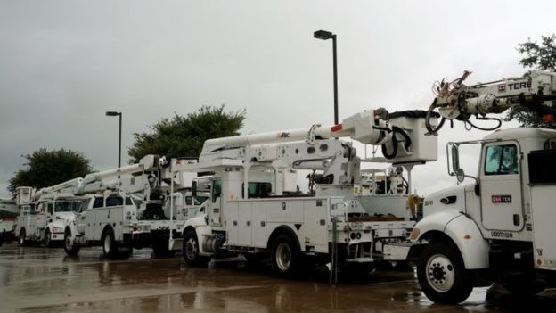 电力公司调集工程车待命,随时处理抢修停电事故。图片来自abc news