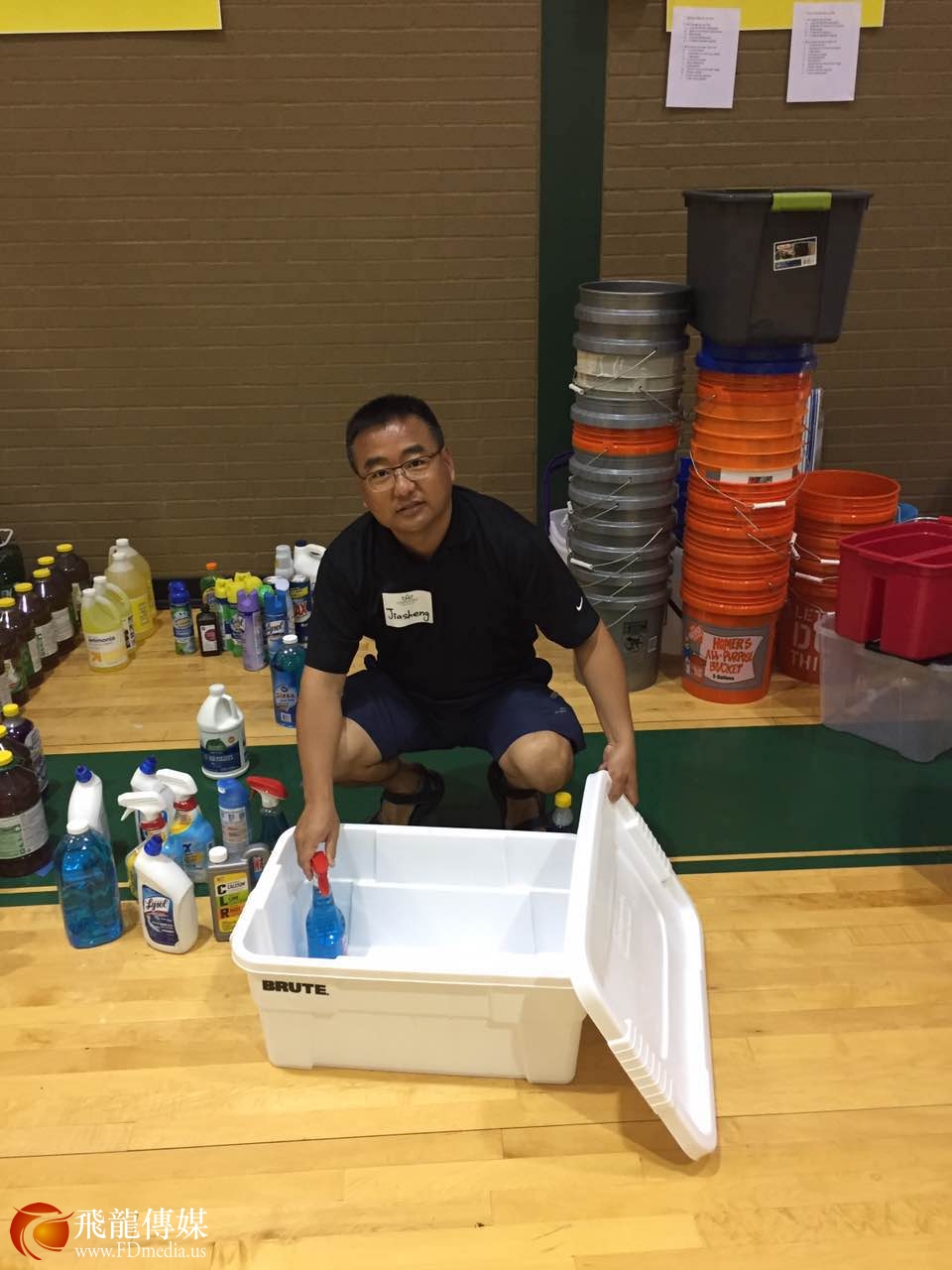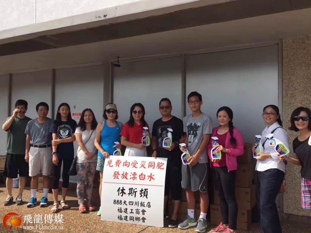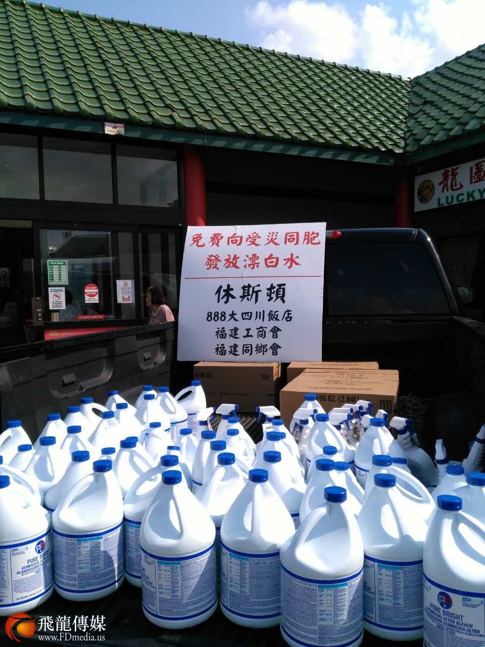 休斯敦福建同乡会连续几天战斗在抗洪救灾第一线,听说清理房屋的漂白水紧张,立即组织人员全城搜索,购买到一卡车漂白水,免费提供灾民领取,灾难来了,没有人退缩,用爱心和奉献与天灾作斗争。