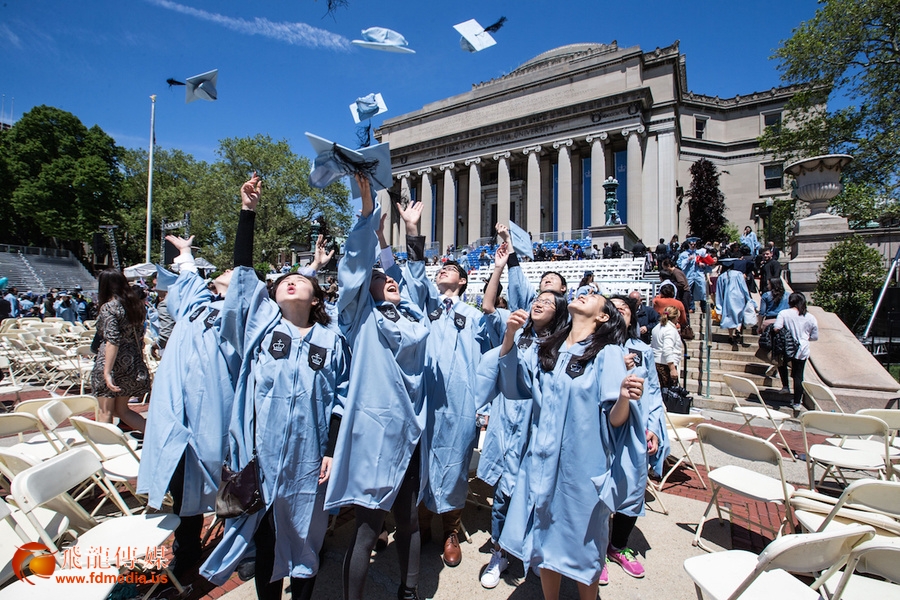 图为今年五月在纽约哥伦比亚大学举办的毕业典礼上的中国学生。调查显示13%的中国买家为子女上学在美国购置房产。图片来源:新华社