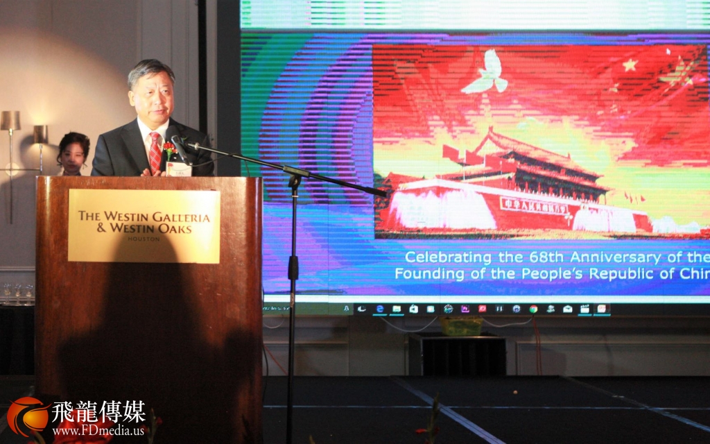 李强民总领事表示;建国68年来尤其是改革开放以后的发展,令全世界瞩目,特别是近年来,如中国自主研制的国产航母、国产大飞机、具有完全自主知识产权领先世界的标准动车组复兴号等举世瞩目的辉煌成就。经过三十年的壮观增长,中国超过日本,成为仅次于美国之后的世界第二大经济体,在国际安全问题、文明交流推动上,中国在世界舞台上扮演着核心的角色,这也是国际社会的认同。李总领事希望广大海外华人在中美关系迅猛发展的大潮中,也提升自己的事业和价值,为美南地区对华交流合作不断取深入发展贡献力量。