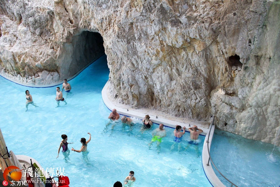气温骤降你是否也在刺骨寒风中瑟瑟发抖?甚至皮肤干燥皲裂骨骼也啪啪作响?来场泡汤之旅吧,在热腾腾的氤氲中,把疲惫交给温热的泉水,化解冷风里的寒气,使自己的每个细胞都有浸润心肺的快感,让这个冷秋多一度温暖。凤凰旅游盘点了全球的特色温泉,快来看看吧。1.洞穴温泉。温泉位于匈牙利密什科尔茨,图为人们在米什科尔茨陶波尔曹洞穴浴场里漫游、行走。这个欧洲独一无二的山洞温泉水温30℃,早自16世纪这里温泉的疗效已经广为人知。