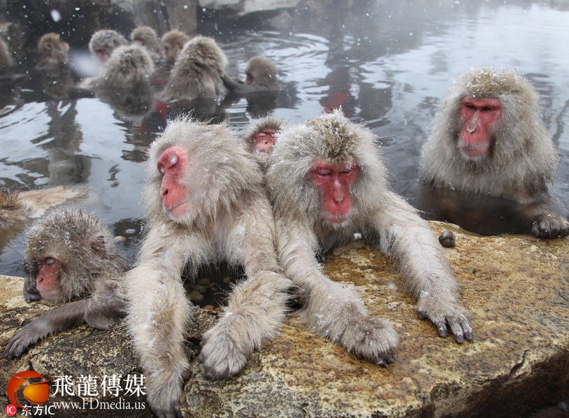 2.雪猴疗养院,地狱谷温泉。相传现在的地狱谷野猿公苑,起源于——志贺高原的上信越高原国立公园横汤川的溪谷中,因当地悬崖陡峭,到处升腾着温泉热气,古代人看到这种光景便称其为“地狱谷”,却没料到现在反而成了野生猴子的泡汤天堂。每到冬天,白雪纷飞时,这些野生猴儿们就会纷纷跳进温泉中取暖驱寒。这些红色面孔的雪猴身披浓密的棕色毛发,攀附在岩石上并将自己浸泡在温暖的温泉中,打着呵欠,看起来好像特别放松。它们在温泉里互相梳理梳理毛发,帮对方抓抓虱子,相互依偎和帮助,一幅和谐美好的景象。大多数猴子喜欢在温泉里安静地泡着,让温暖的泉水为它们带走寒冷和疲乏,也有的猴子特别好动,还不时潜入水中寻找食物。