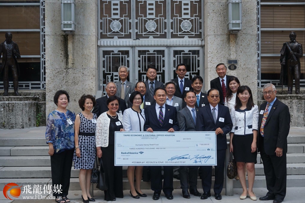 休斯敦侨社与台北经文处9月19日赴市政府捐善款,为“哈维”赈灾。
