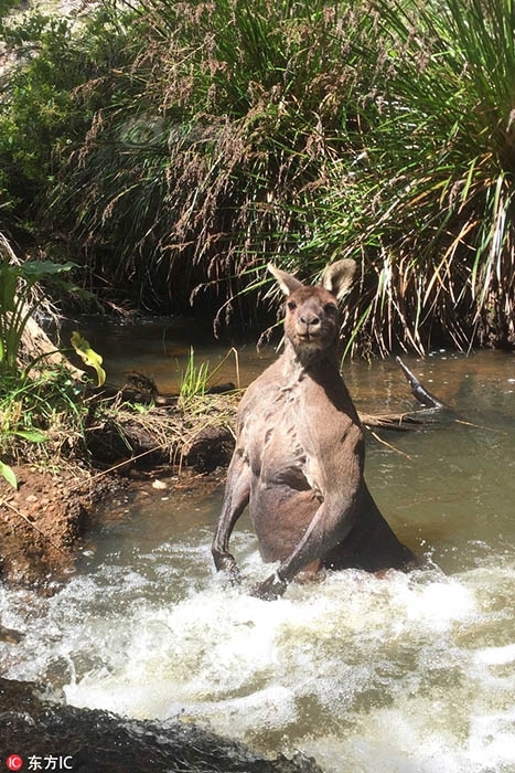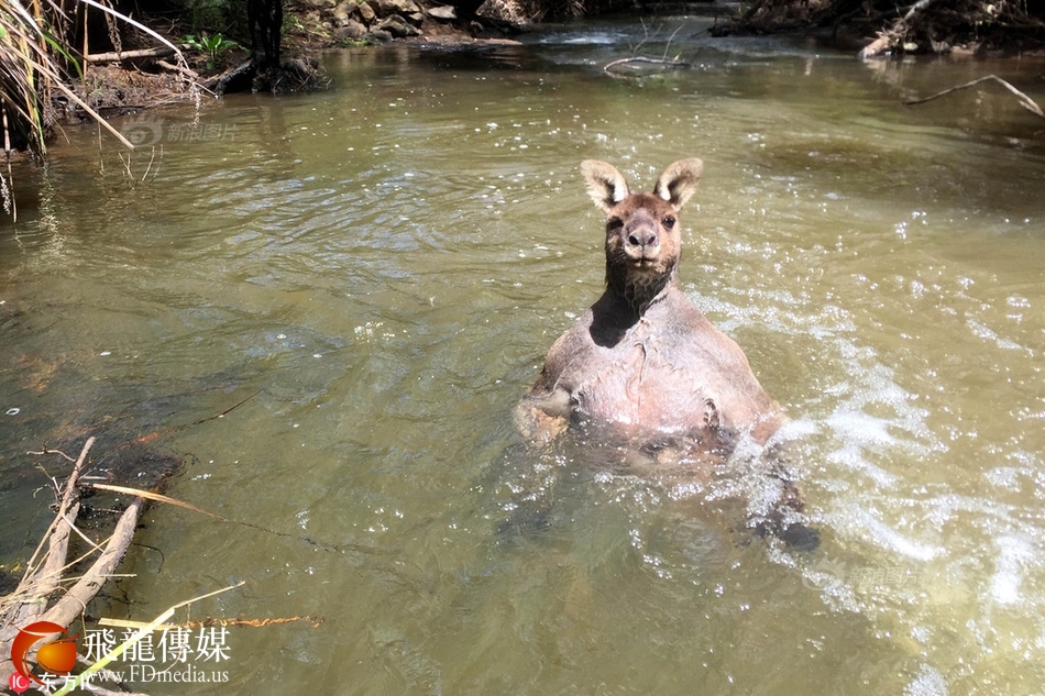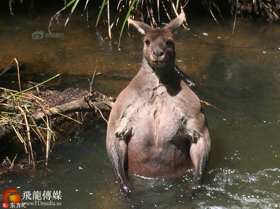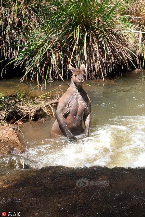 摄影师拍到袋鼠在河中的画面。(责任编辑:王怡 SN065)