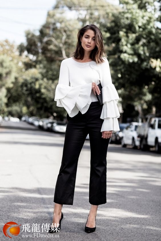 只要有夸张的喇叭袖上身,一个亮点足以撑起好品味,可以来一件短上衣,搭配裤装或者裙装都能轻松凹造型。