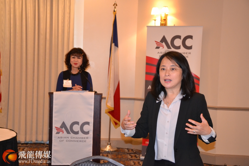 亚商会亚商会董事会理事、大通银行亚裔副总裁Claire Jin做自我介绍