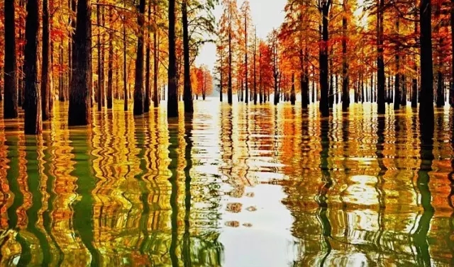 青山湖上千亩国内罕见水上森林,堪称天下一绝!特别是深秋,逐渐转为暗红色,云雾飘渺,变幻无穷。