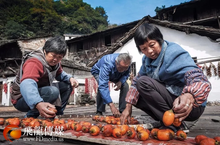 株川古村——石板屋前晒秋