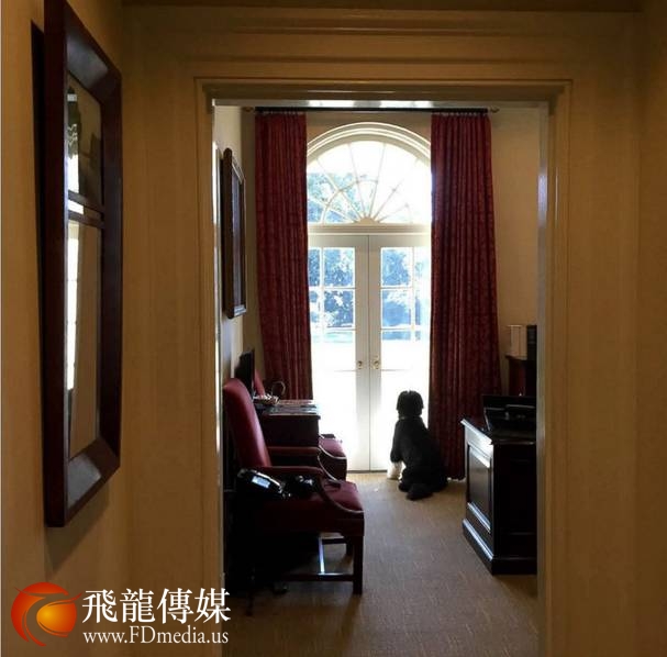 图为宠物狗Bo在椭圆办公室外。