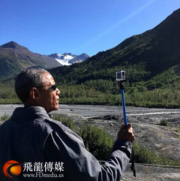奥巴马在阿拉斯加用GoPro自拍。