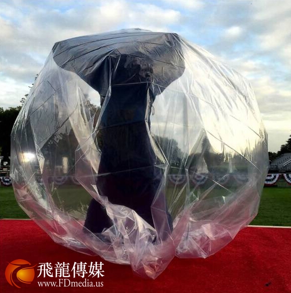 总统的演讲台被塑料布罩上。