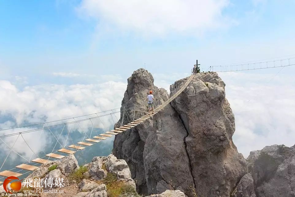 而恰恰在这危险又神秘的1200 米高空处,雾和尖石之间,他们建了一座看起来摇摇欲坠的绳桥。