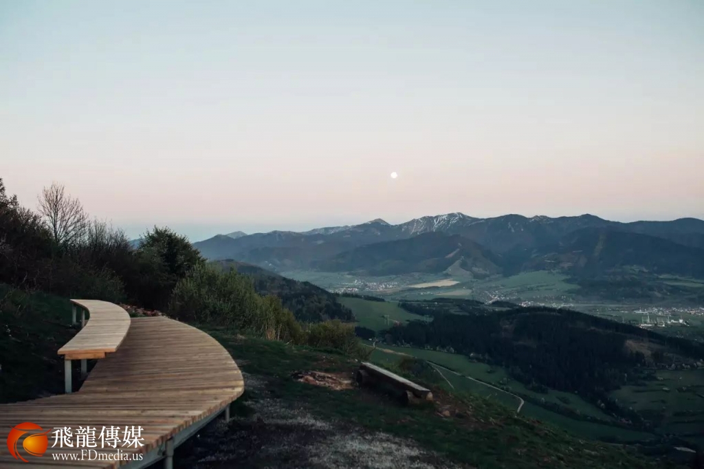 沿着木板路慢慢登上Straník 山顶,这些当地的刺槐木不需要特别维护,也能抵御虫害以及不断变化的天气。