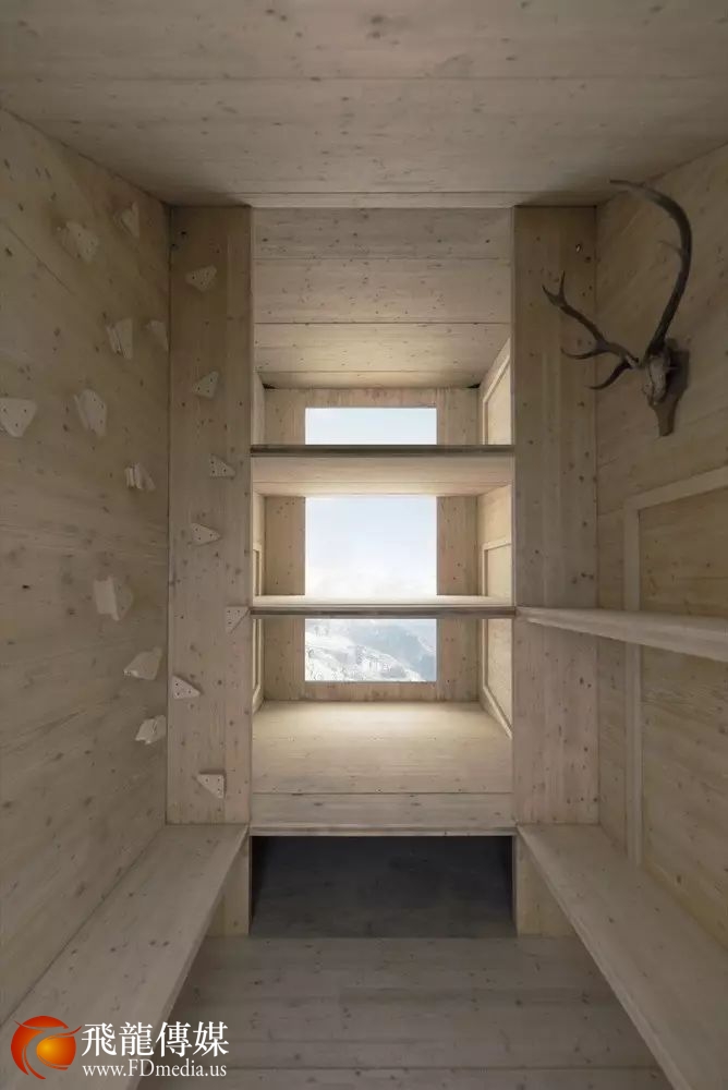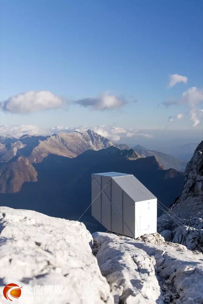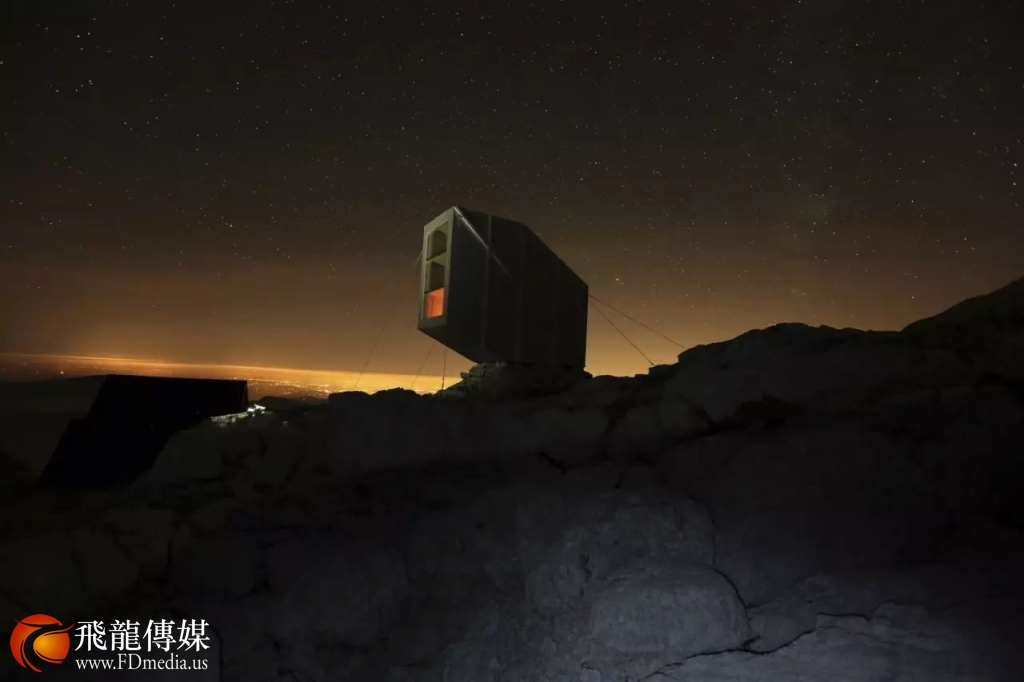 三层楼的小屋,超大玻璃窗,只最多能为9 位登山者提供住宿。