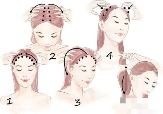 手指由前额深摩头顶至脑后,每秒2~4次,可促进脑部血液回流,使发根得到充分营养,令头发黝黑亮泽。同时可以缓解大脑疲劳,预防脑血管疾病。