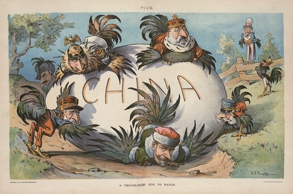 随着义和团运动被镇压,中国最后的贸易堡垒也被列强击破。美英日自封为中国贸易的看门犬,而《顽童杂志》漫画的注解说明,保持门户开放的最好办法是不让它关闭,一副十足的霸权主义嘴脸。