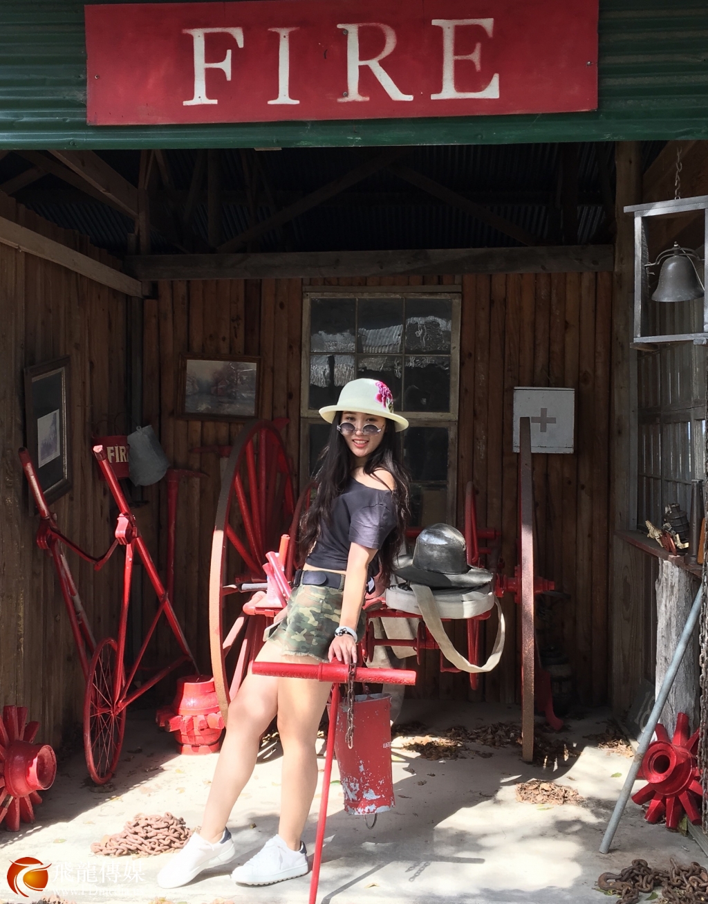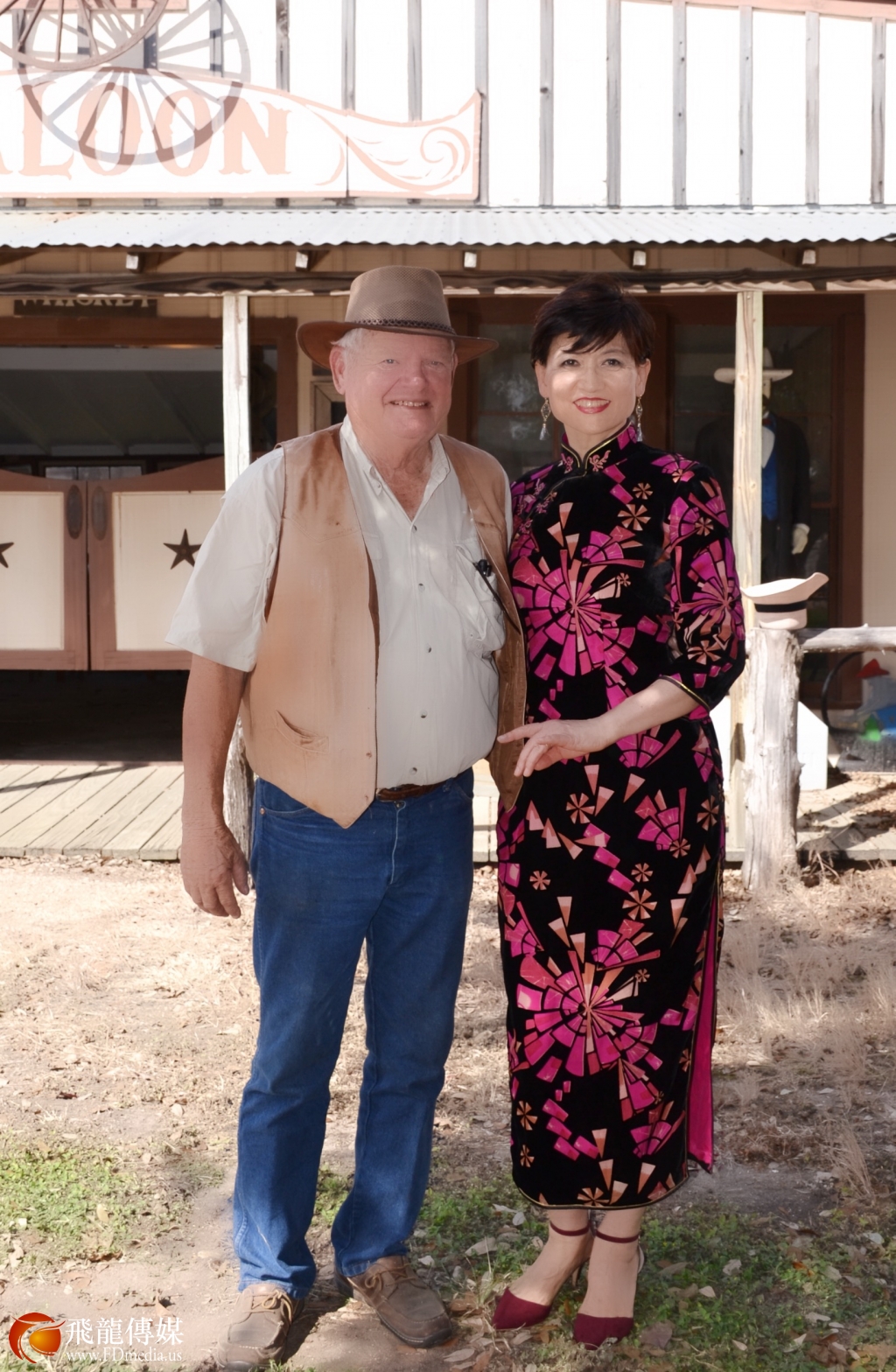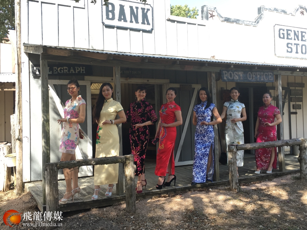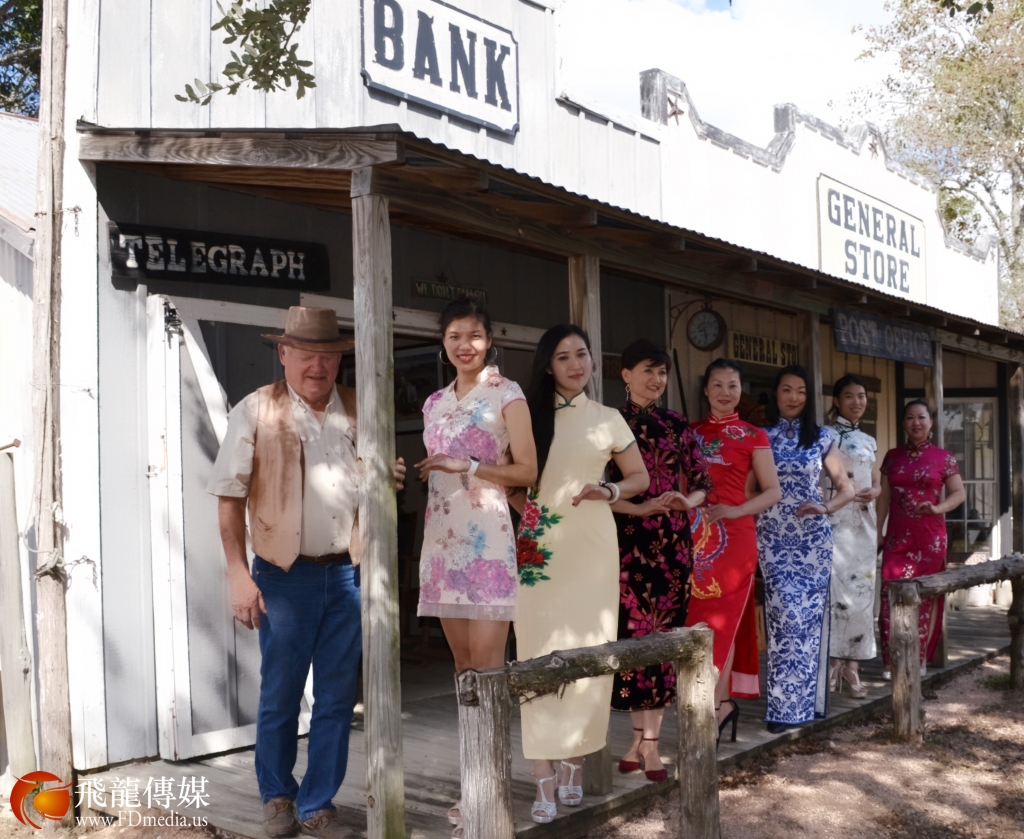 《2017美国旗袍大赛》的部分选手拍摄外景,佳丽们参观了布什家族的私人医生的庄园,整个庄园像一个1860年代的美国西部城市,22栋木制建筑“从市长办公室、医院、学校、邮局、银行、教堂、酒吧、宾馆、澡堂铁匠铺等等,建筑内的所有摆设都是庄主多年来收藏的古董,完全呈现了美国最早的牛仔风情。好莱坞有5部电影在这里取景,每年的辣妈大赛选手都会来这里拍摄外景及影视拍摄体验,80岁高龄的庄主Jimmy先生亲自讲解,给每一届选手留下了深刻的印象,庄园不对外开放,只对朋友和外国友人开放,Jimmy先生说;因为国际辣妈大赛选手每年来,每一届佳丽不但长得漂亮也非常有礼貌,并给他带来中国特色的小礼品,让他更多的了解中国文化,所以,他说中国人是他最喜欢的客人。