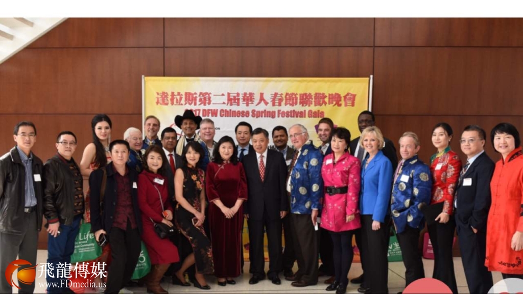 中国驻休斯敦总领馆李强民总领事携夫人曾红燕女士参加由北美旗袍会主办的第二届达拉斯春晚,并在晚会上介绍中国的大好形势。