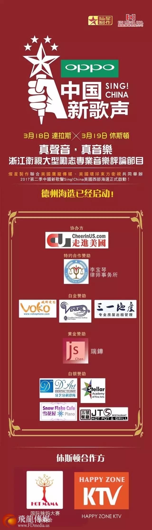 3月19日,由《国际辣妈大赛组委会》合作的浙江卫视名牌节目《中国新歌声》美国休斯顿海选,在Happy Zone KTV 圆满落幕。25选手经过五个小时的比赛,最终5位选手在激励的角逐中,用美妙的歌声突出重围成功晋级。