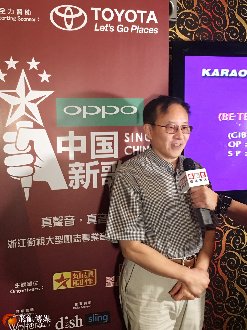 担任浙江卫视名牌节目《中国新歌声》美国休斯顿海选的评委萧楫老师,他在比赛结束后接受记者采访。