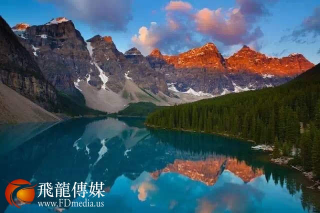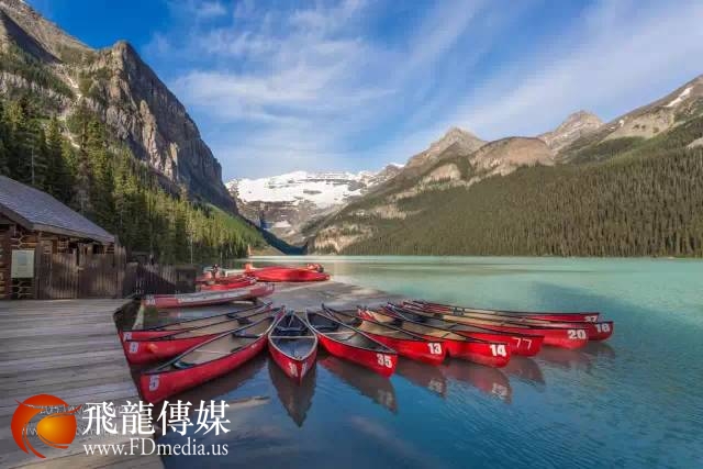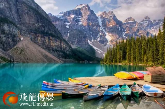 由冰川溶水形成的梦莲湖(Moraine Lake)是世界公认最有拍照身价的湖泊!湖面呈宝石蓝色,晶莹剔透,像是一颗璀璨的明珠。梦莲湖坐落在著名的十峰谷(Ten Peaks)中,湖底积满了富含矿物质的碎石,经年累月的沉积形成了变幻多姿的碧蓝色湖水。伫立在湖边,遥望远处连绵的落基山脉,令人不禁感叹大自然造物的神奇。梦莲湖的迷人景色曾被印制在1969年和1979年发行的二十加元纸币的背面,如诗如画的美景令众人所倾慕。虽然这样的纸币如今已经不在发行,却成为收藏家们的珍爱。
