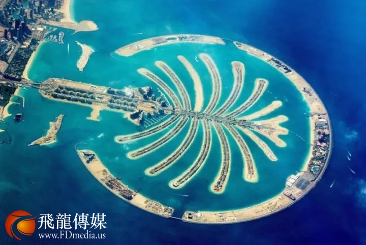 耗资140亿美元打造而成的迪拜棕榈岛被誉为“世界第八大奇迹”,其独特的棕榈树造型令迪拜的海岸线向外延伸了520公里。