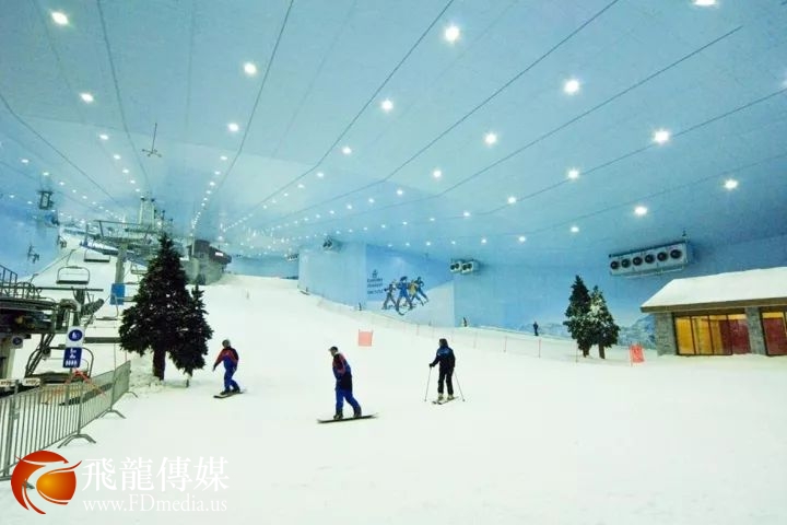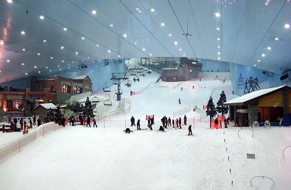 迪拜室内滑雪场是世界最大的室内滑雪场,占地2.25万平方米,耗资近3亿美元,面积相当于3个足球场,可容纳1500人同时滑雪。