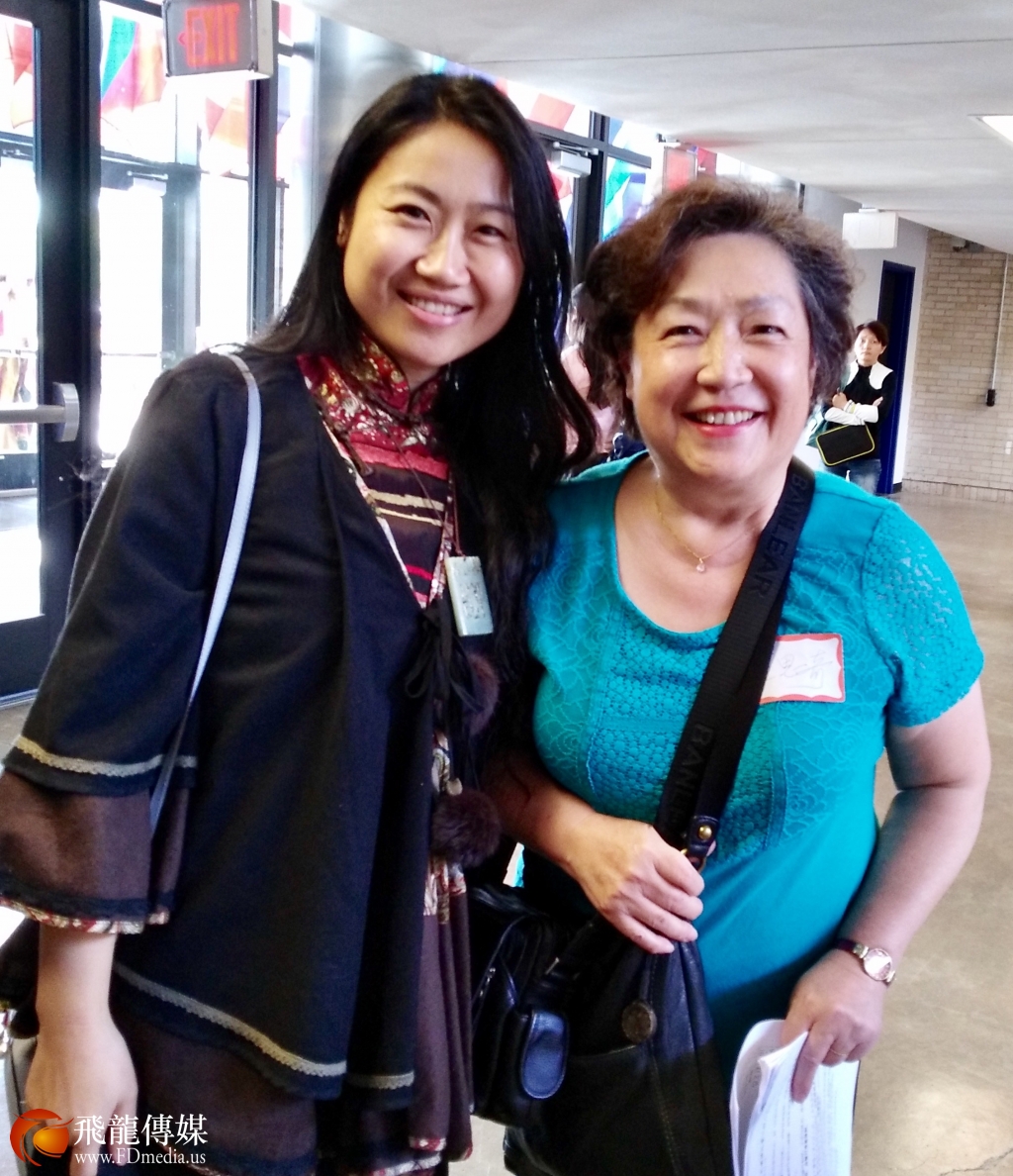 朱金月校长(左)与董思奇女士(右)在比赛现场亲切合影