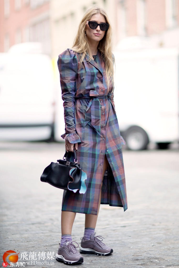 国外潮人们也已经穿上身了,虽然这款鞋子比较硬朗风,但是搭配上柔软又女性化的裙装就更加时髦了,露出一截袜子就更好了哦~~~