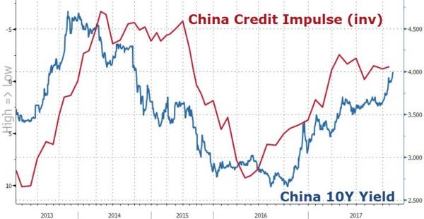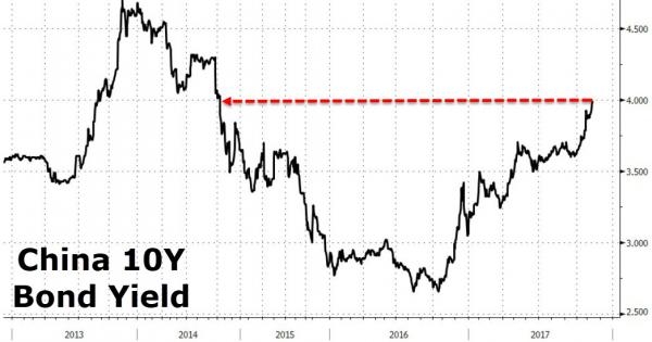 在昨晚发布趋缓的经济数据之后,中国10年期债券的收益率自2014年10月以来首次突破4%。此外,中国国债收益率曲线的反转已连持续22天,创出记录。分析师警告称,这种情况有可能会继续恶化。