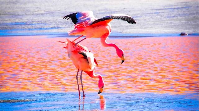 流光溢彩的拉巴斯如同祥云间从雪山流入人间;火山脚下传说中美丽珍贵的野生羊驼;在闪着金属光泽的湖面上傲娇飞翔的火烈鸟;充满着地域风情商品的女巫市场,都是玻利维亚带给你的惊喜。