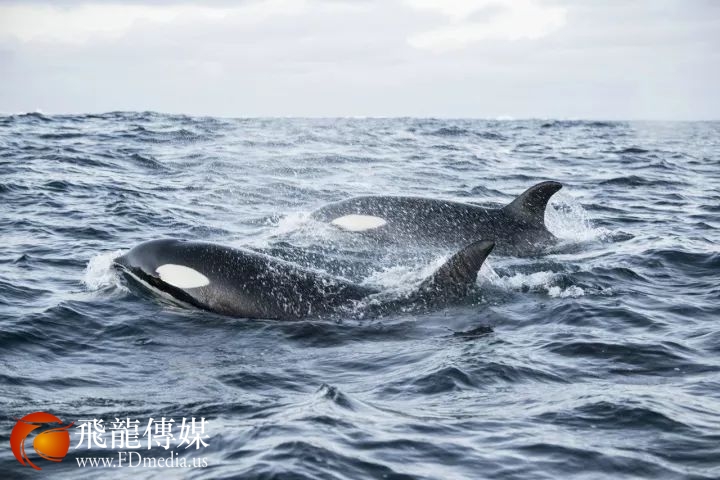 这些虎鲸历时数月追踪寒冷洋流,探查峡湾,猎捕鲱鱼。它们的捕猎方式是猎食球状鱼群——将这些银色的鱼赶成一团,用尾巴重重击打,然后大吃被打昏的鱼群。