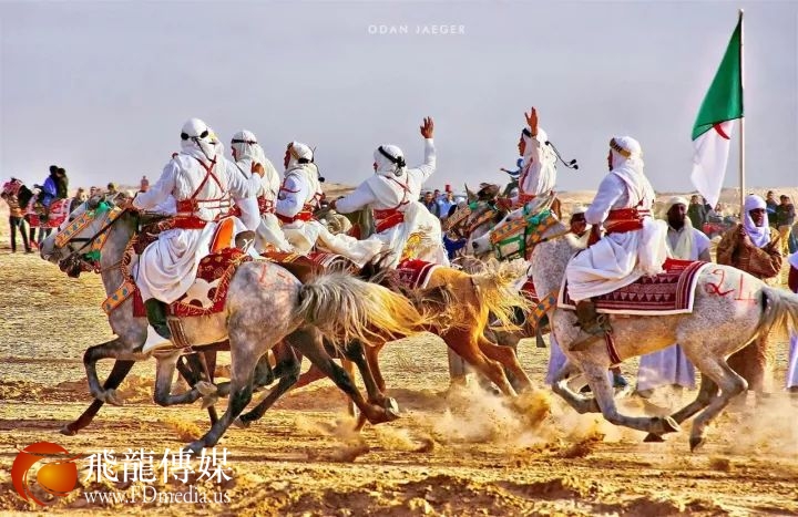 就在基督教世界忙着庆祝圣诞节的时候,撒哈拉的游牧民族涌入突尼斯通往沙漠的门户杜兹(Douz),为自己的文化而欢庆。这座沙漠小城举办骑骆驼大赛、萨卢基犬猎兔活动和被称为“幻想曲”的军事表演,选手们骑着阿拉伯马熟练地慢跑、转弯、停下、举起步枪射击。