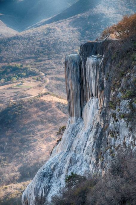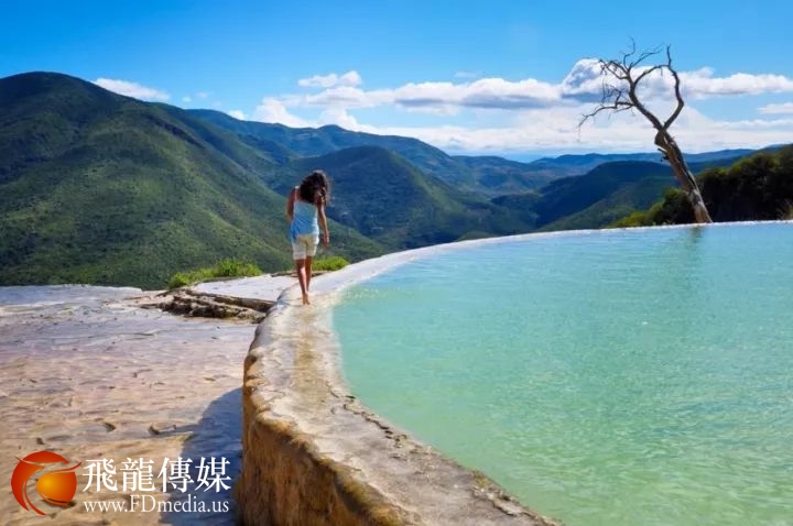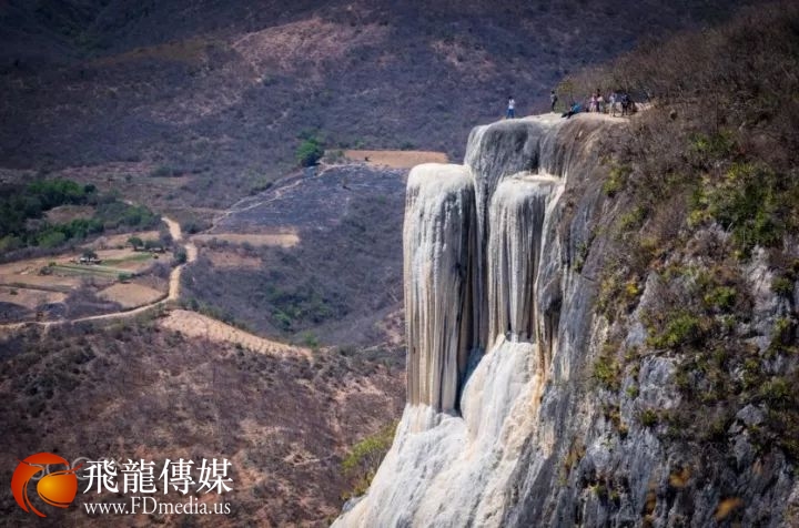 严格来说,瓦哈卡的滚水石瀑(Hierve el Agua)不算在尤卡坦半岛,不过离得不远。因其在悬崖边上的壮观天然景观,实在让小飞君忍不住安利一波。富含矿物的泉水沿着悬崖,经过千百年的流淌,沉淀成白色的如瀑布一般的石化景观,有点像土耳其的棉花堡。