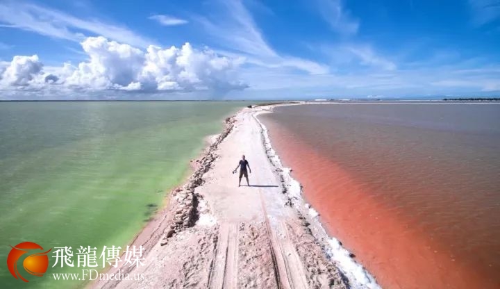 与赫特泻湖不同,这个湖的粉色来自水中的浮游生物和盐水虾。相比岩层下红土透过的那种似有似无的粉色痕迹,这里的粉色更为浓厚饱满。更因为土层之上保有一层薄薄的水,这里成了名副其实的粉色天空之境。湖岸上那白色沙滩,无论是颜色和触感都无比温柔。一条沙滩之隔的另一边,便是晶莹剔透的墨西哥湾。