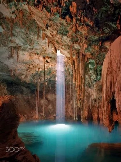 尤卡坦半岛有着不少神秘的水下洞穴,巨大的钟乳石或石笋,兼具神秘感历史感的热带雨林等,都吸引着众多的潜水爱好者前来。其中最出名的水下“死亡”洞穴Cenote Angelita,被称作是海底流淌的河,这里各种地质奇观和多样化的气候创造出独一无二的生态景观,被称作世界上最美的潜水之地。入口还有警示牌告诫潜水爱好者,进入此地要做好面对死亡的准备。