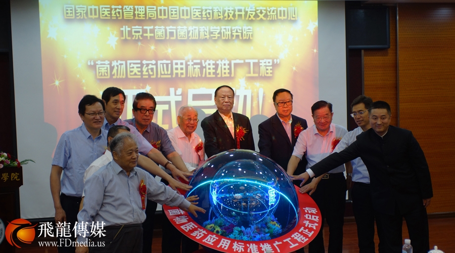国医大师金世元、国医大师张大宁、卫生部原副部长曹荣桂、国家食品药品监督管理局原副局长边振甲、国家中医药管理局原副局长中国中药协会会长房书亭、中国食用菌协会会长顾国新、中国中医科学院副院长杨龙会、菌物学家卯晓岚、中国武警医学院原院长雷志勇将军、中国中医药科技开发交流中心主任黄晖、"菌物医药应用标准推广工程"主任陈增华共同完成启动仪式。