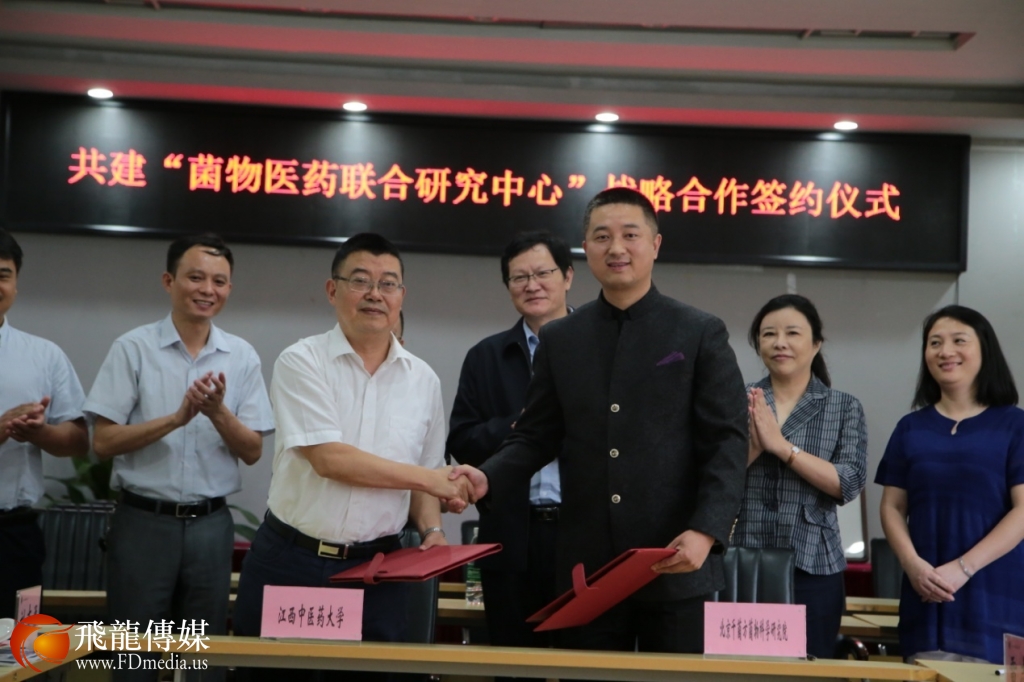 鉴于陈增华先生开创的菌物医学体系对中医药创新的重大意义,江西中医药大学副校长杨明教授(上图左一)与陈增华先生进行多次沟通,磋商开展相关科研合作。2017年9月28日,双方决定在江西中医药大学设立“菌物医药联合研究中心”,由陈增华担任该中心主任,带领博士团队开展菌物医药方面的科研工作,并特聘陈增华先生为菌物医学学科教授,在学校开展菌物医学授课工作。