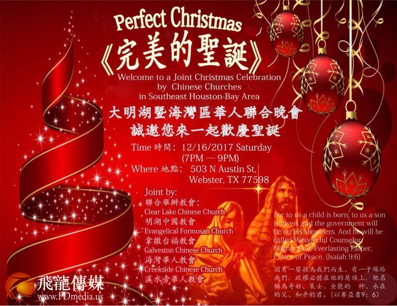 圣诞佳节,阖家欢聚! 诚挚邀请您及家人一起参加《完美的圣诞》晚会! 这是大明湖暨海湾区华人教会首次联合举办的圣诞庆祝盛会!