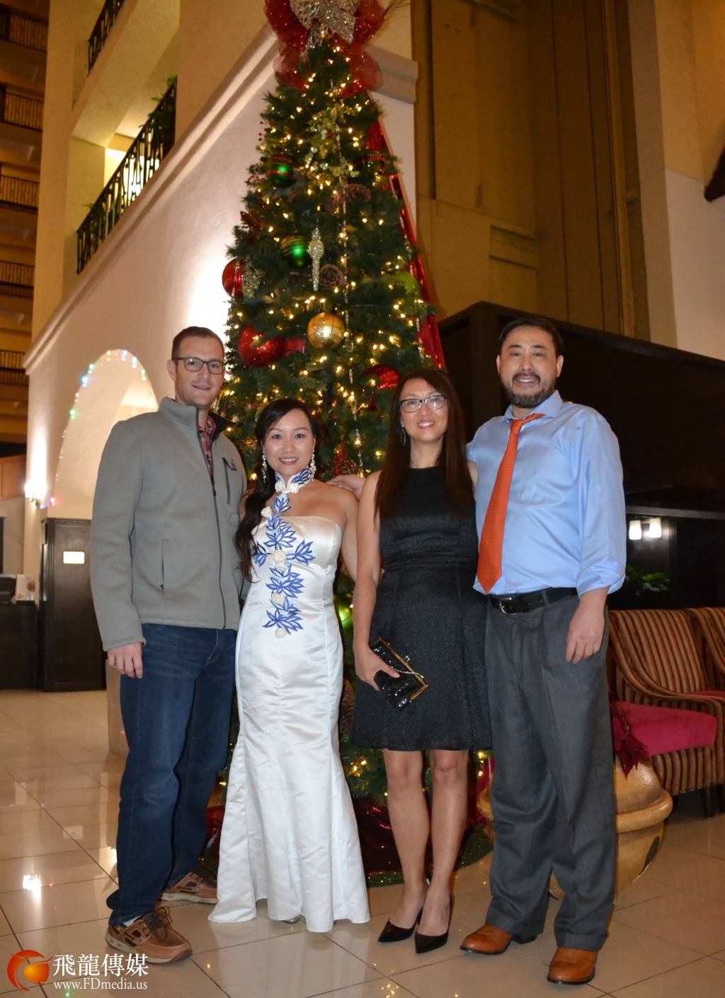 12月16日,休斯敦皇冠假日酒店(Crowne Plaza Suites Houston - Near Sugar Land)举行圣诞节酒会。徐宁波董事长率领各部门经理在酒店大厅欢迎宾客,来自休斯敦及外州的贵宾一百多人参加,酒会上表演传统的“火烧咖啡”、唱歌有奖、游戏等娱乐节目,活动非常热闹开心,充满了节日气氛。