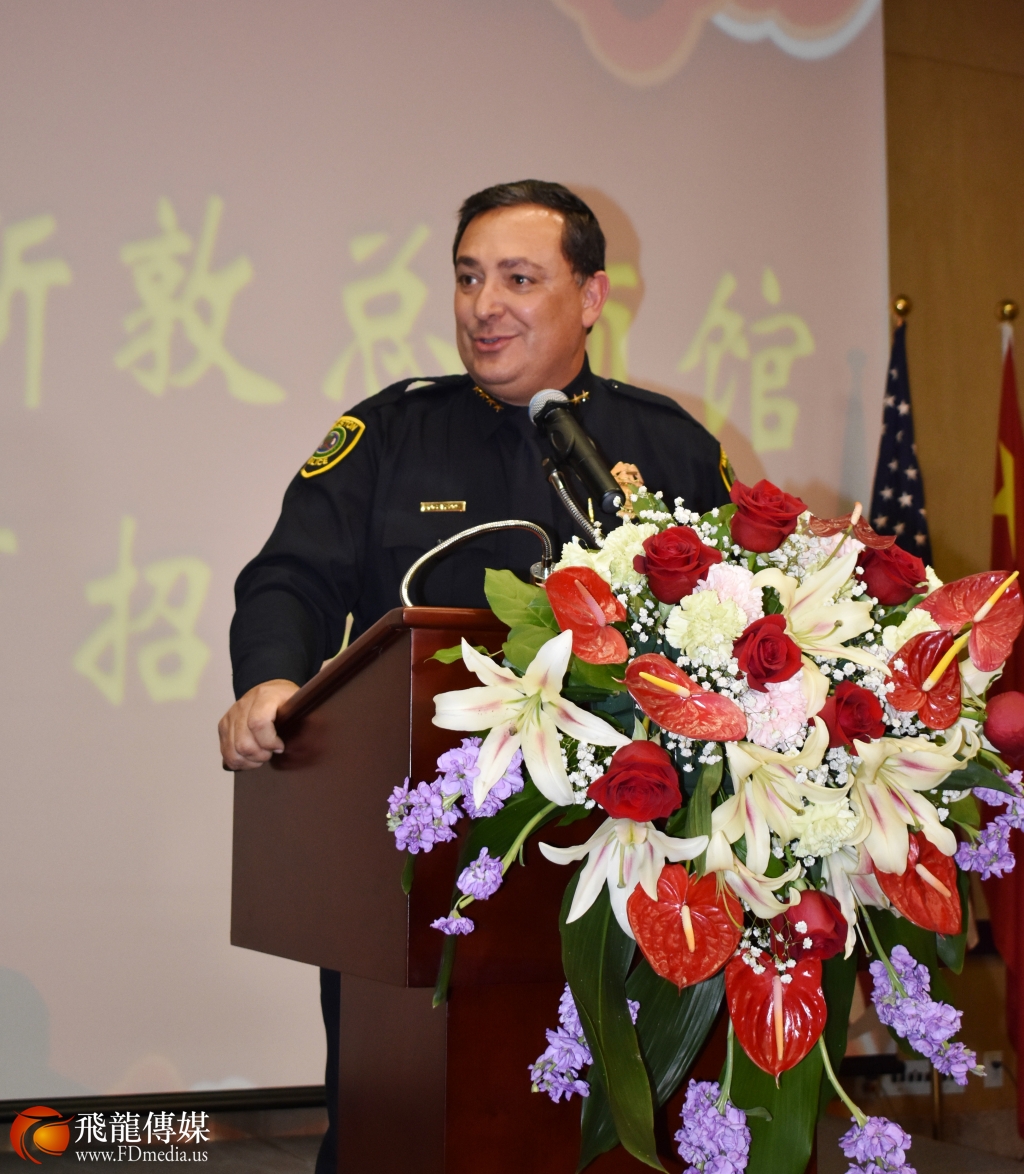 应邀出席招待会的嘉宾有 City Council Member Jack Christie、State Senator Paul Bettencourt、州长办公室代表陈中、德州州议员吴元之、休斯敦警察局长 Art Acevedo、国会议员Al Green亚裔助理谭秋晴、国会议员Pete Olson 亚裔助理张晶晶、休斯敦社团领袖及各界精英三百多人应邀出席。刘红梅副总领事主持了招待会。