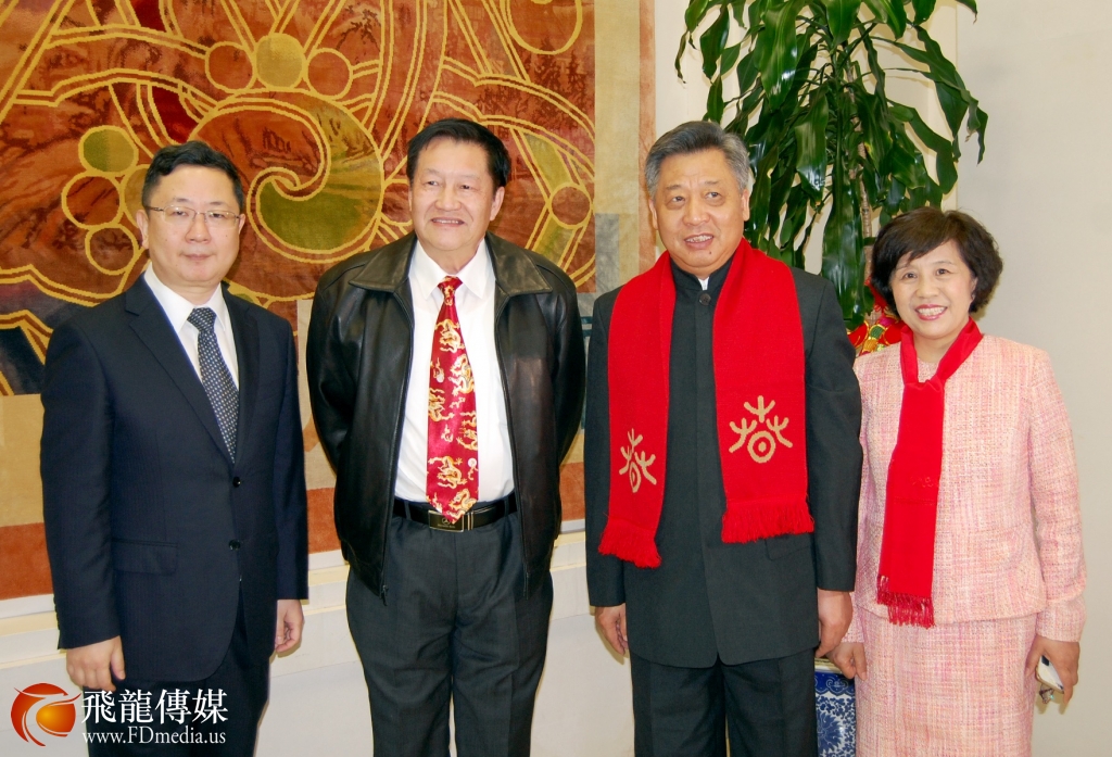 左起: 副总领事王昱、德州中国和平统一促进会前会长邓润京、总领事李强民及曾红燕女士合影。