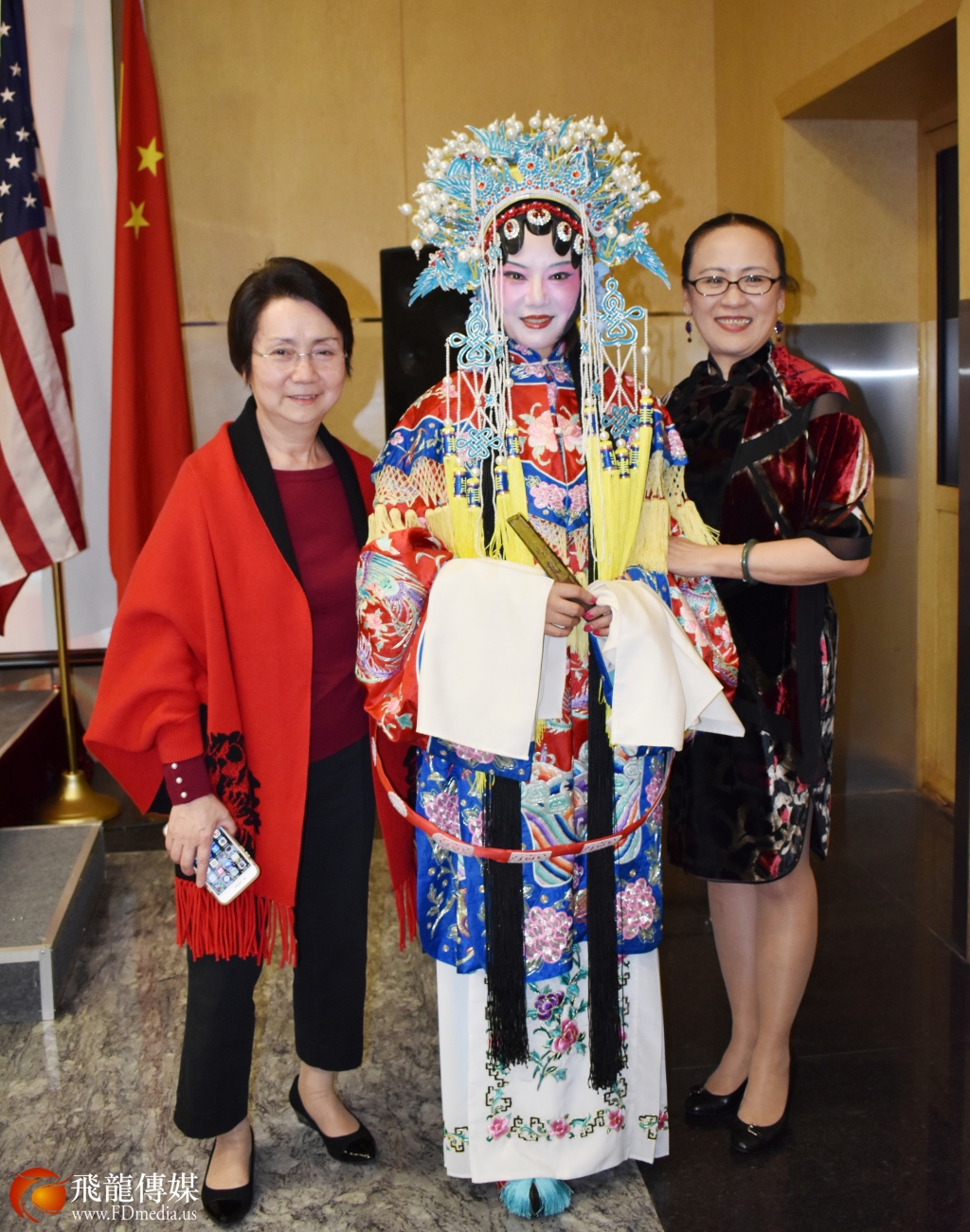 休斯敦华星艺术团团长鲍玲、华星艺术团副团长虞晓梅、舞蹈家聂莉敏合影。