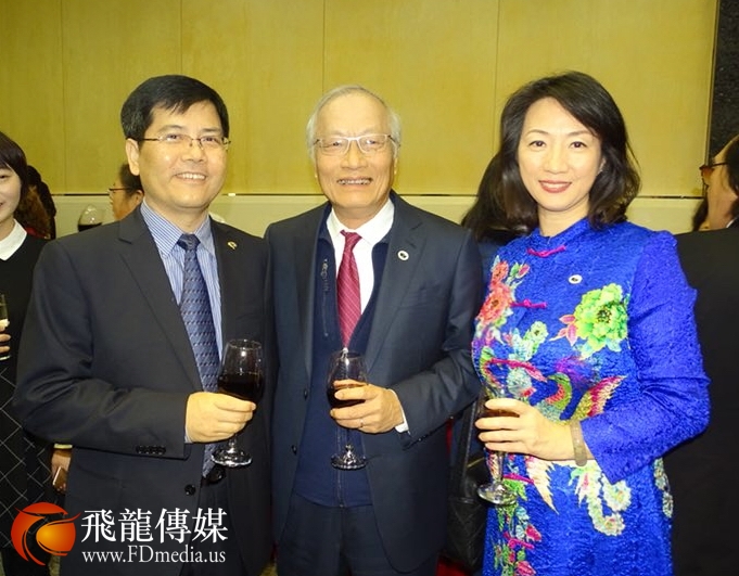 安徽省侨办海外联络处处长赵明、恒丰银行董事长吴文龙、恒丰银行公共事务部经理周明洁合影。