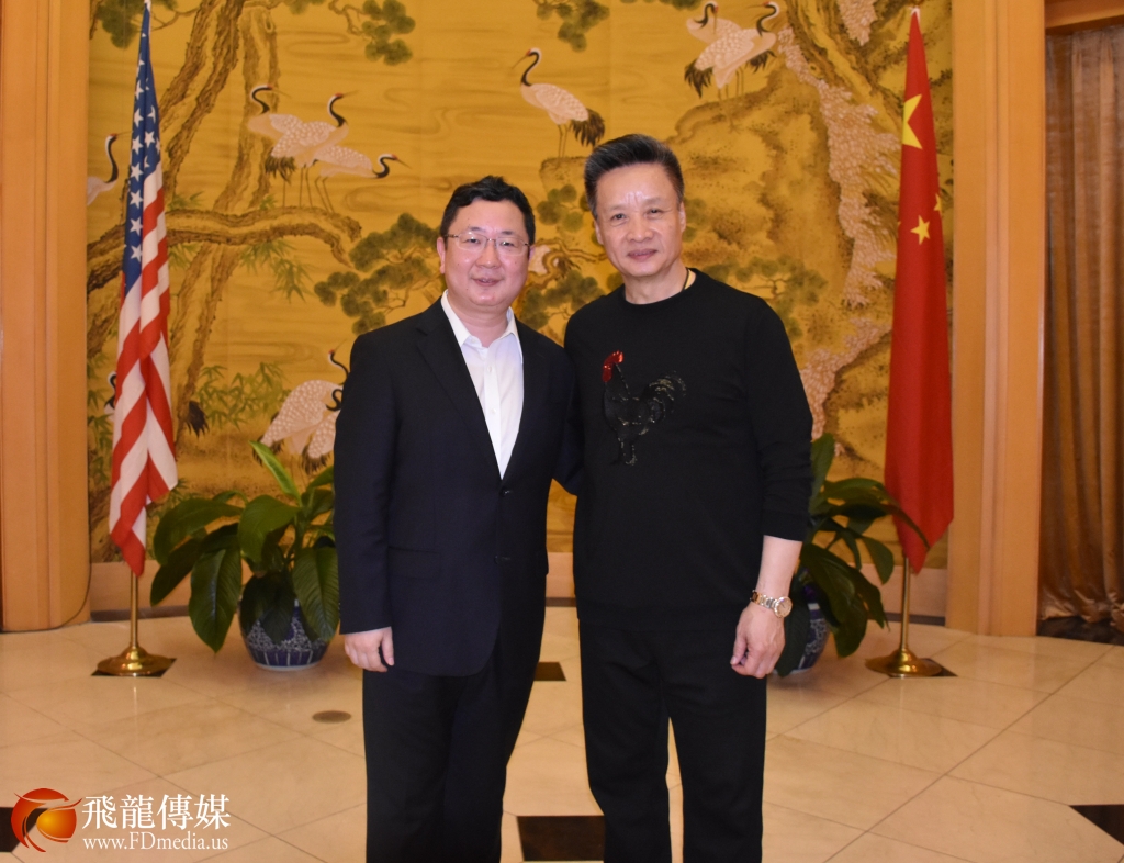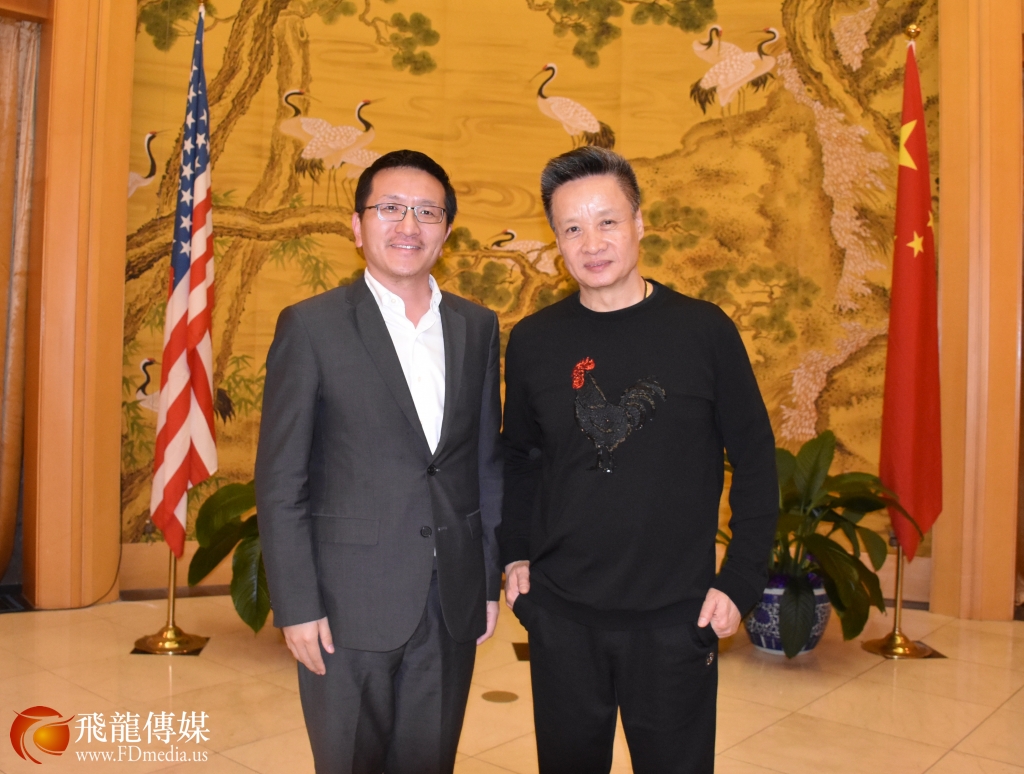 中国驻休斯敦总领馆侨务组组长 房振群与歌唱家阎维文合影。(小珑 摄影)